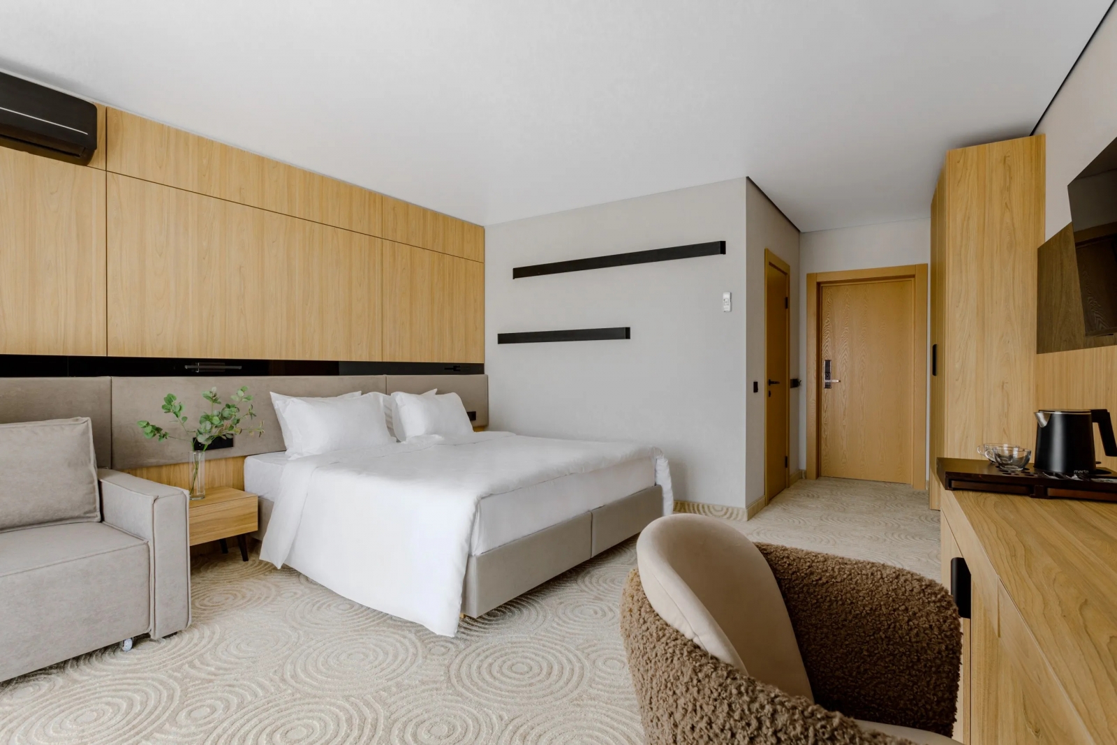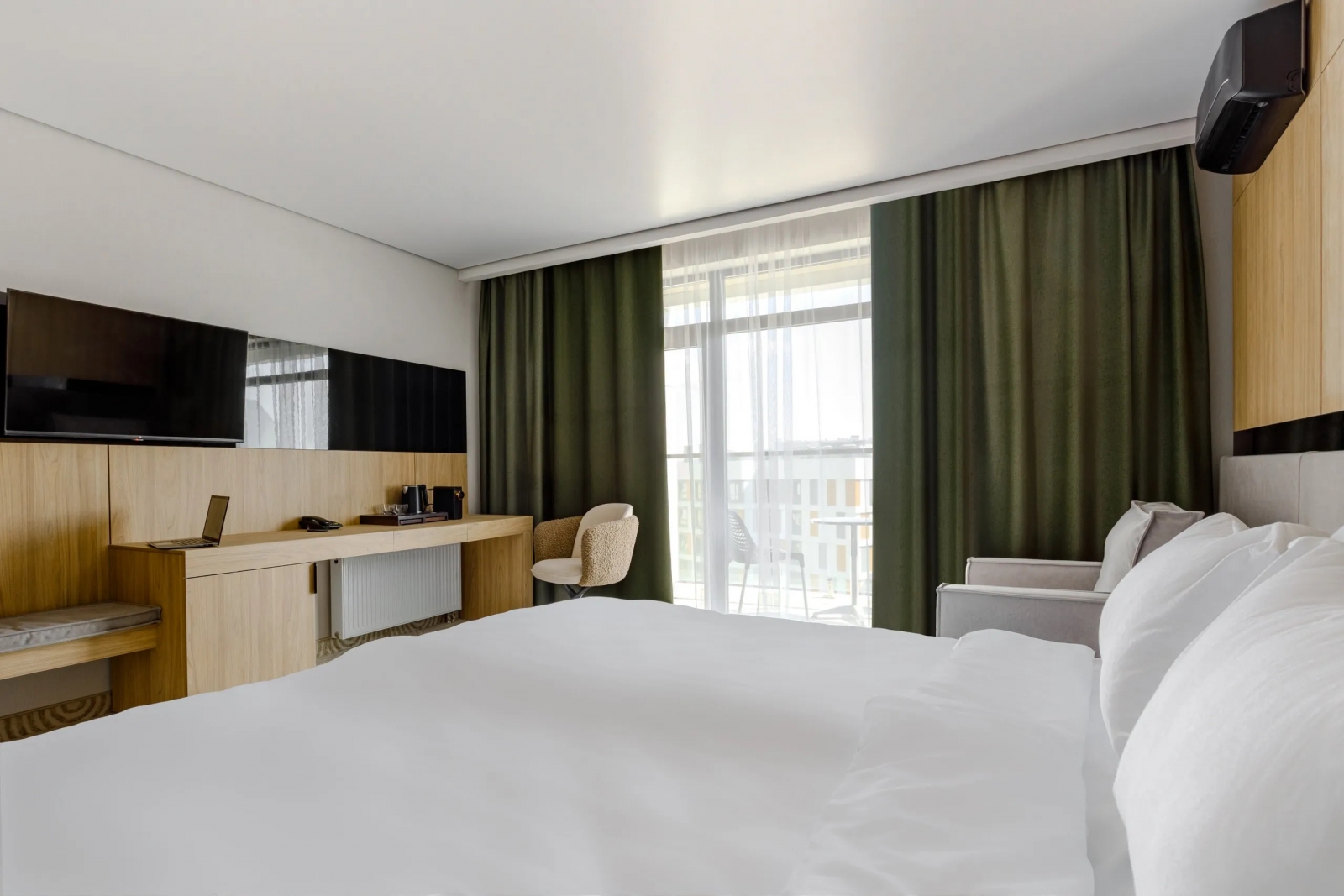 Номер однокомнатный 29 кв.м., с двуспальной кроватью и доп местом для двух детей до 14 лет включительно - диван-кровать 140х195.